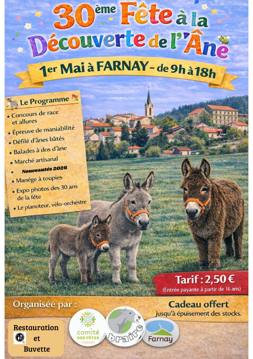 Cette année c'est la 30ie édition de "la journée à la découverte de l'Ane" . Nous vous attendons très nombreux pour découvrir des nouvelles animations, visiter l'exposition célébrant ces 30 journées à travers: