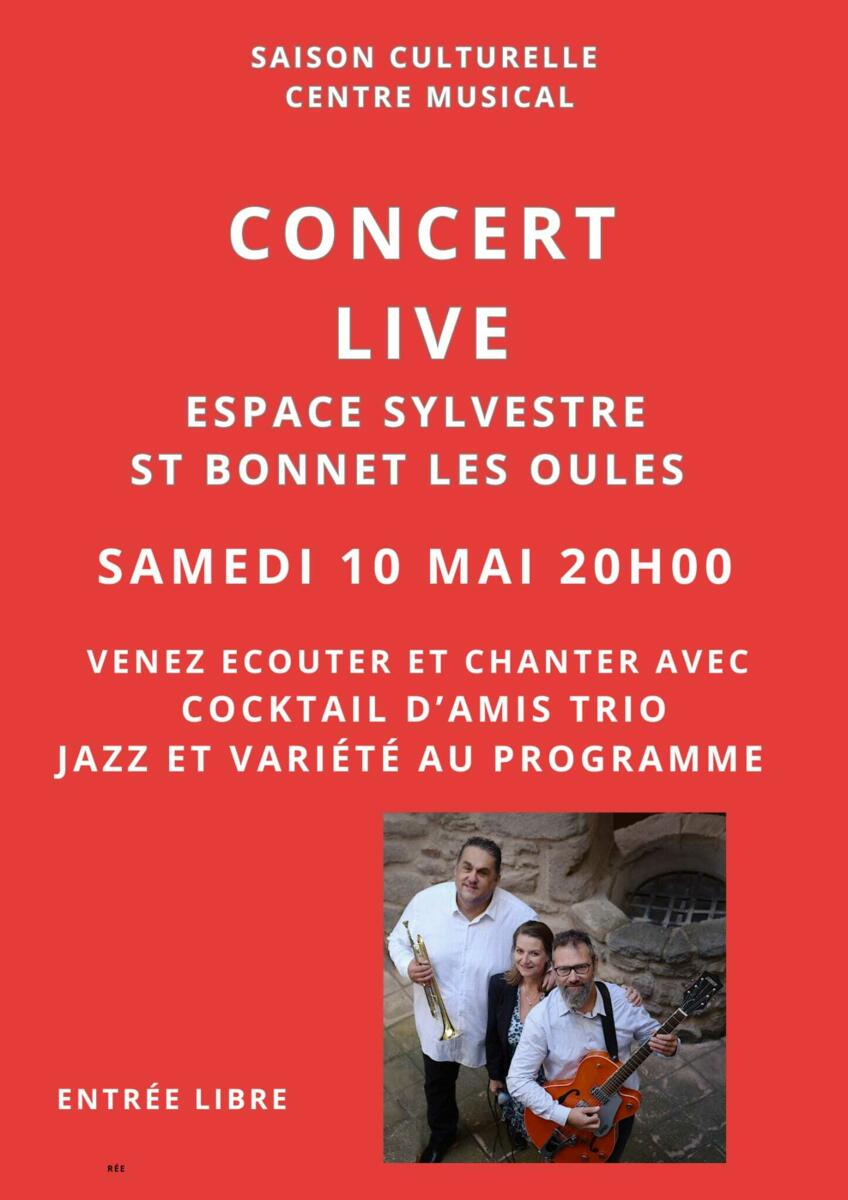 Saison culturelle du centre musical - 10 mai 7/5/25 Venez passer un excellent moment ! Source : Mairie de Saint-Bonnet-Les-Oules