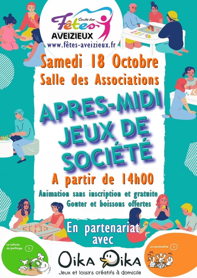 Le Comité des Fêtes, avec la participation de OIKA OIKA (Jeux et Loisirs créatifs à domicile), vous propose de venir passer l'après-midi à jouer à des jeux de société en famille ou entre amis ou même seul ou seule.