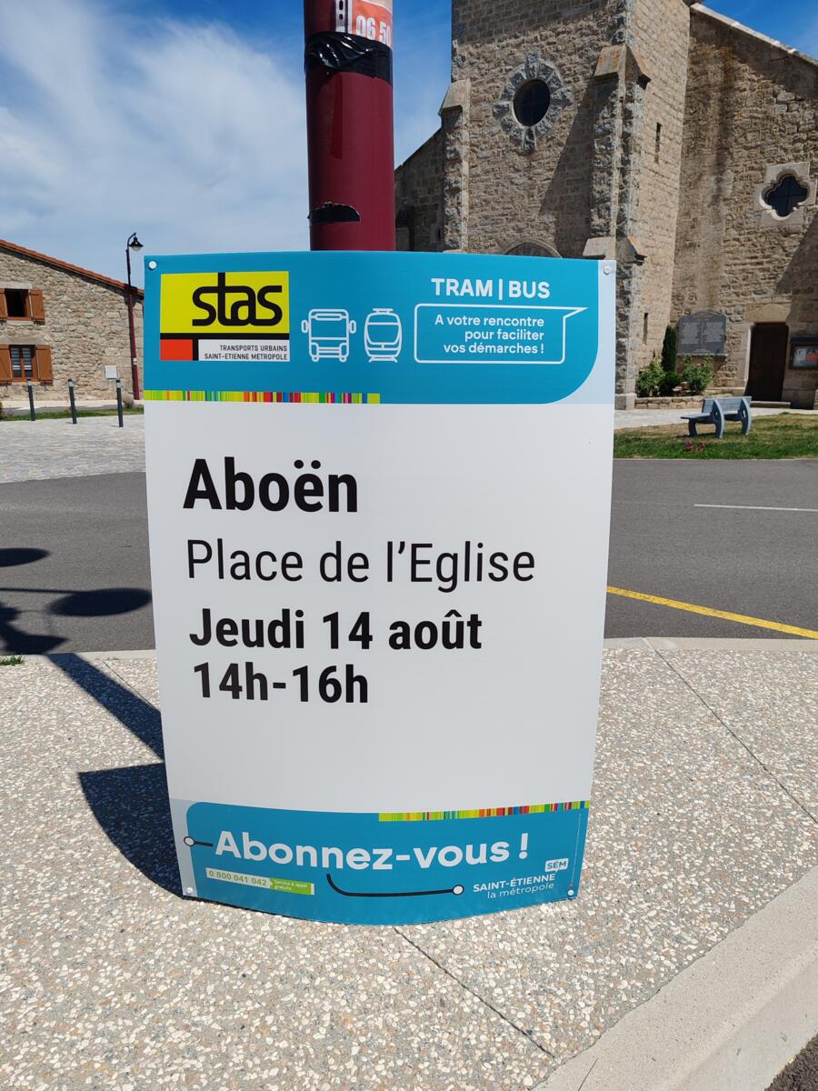 Le jeudi 14 août, de 14h à 16h, retrouvez le bus infos STAS sur la place de l'Eglise d'Aboën. L'occasion de prendre des informations, des conseils ou de s'abonner.