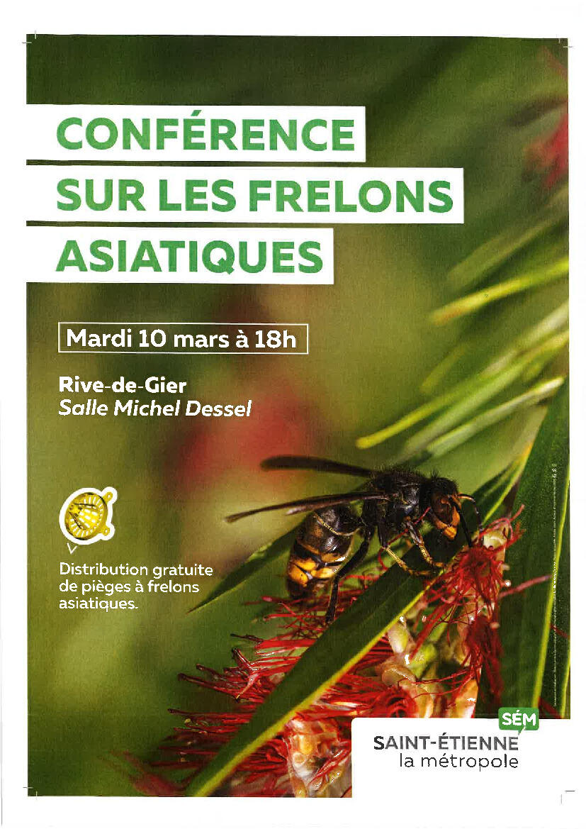 Conférence frelons asiatiques 26/2/26 Un conférence sur les frelons asiatiques aura lieu le mardi 10 mars à 18h00 à Rive de Gier.