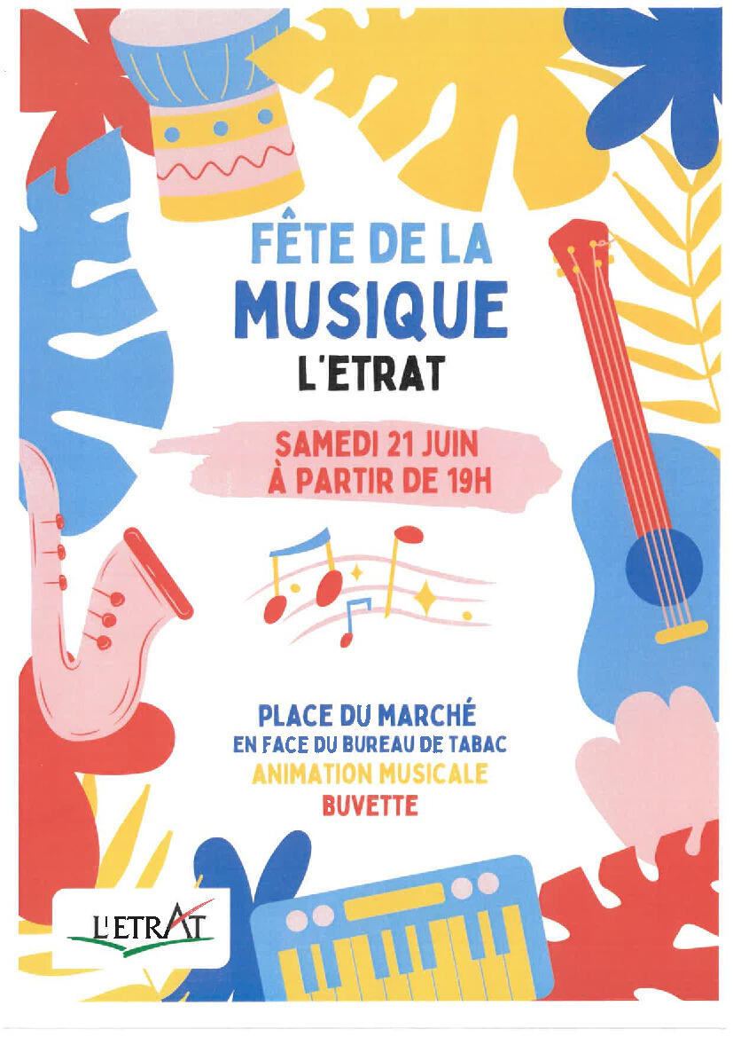 Fête de la Musique 11/6/25 Samedi 21 juin à partir de 19h Animations musicales Buvette et restauration sur place