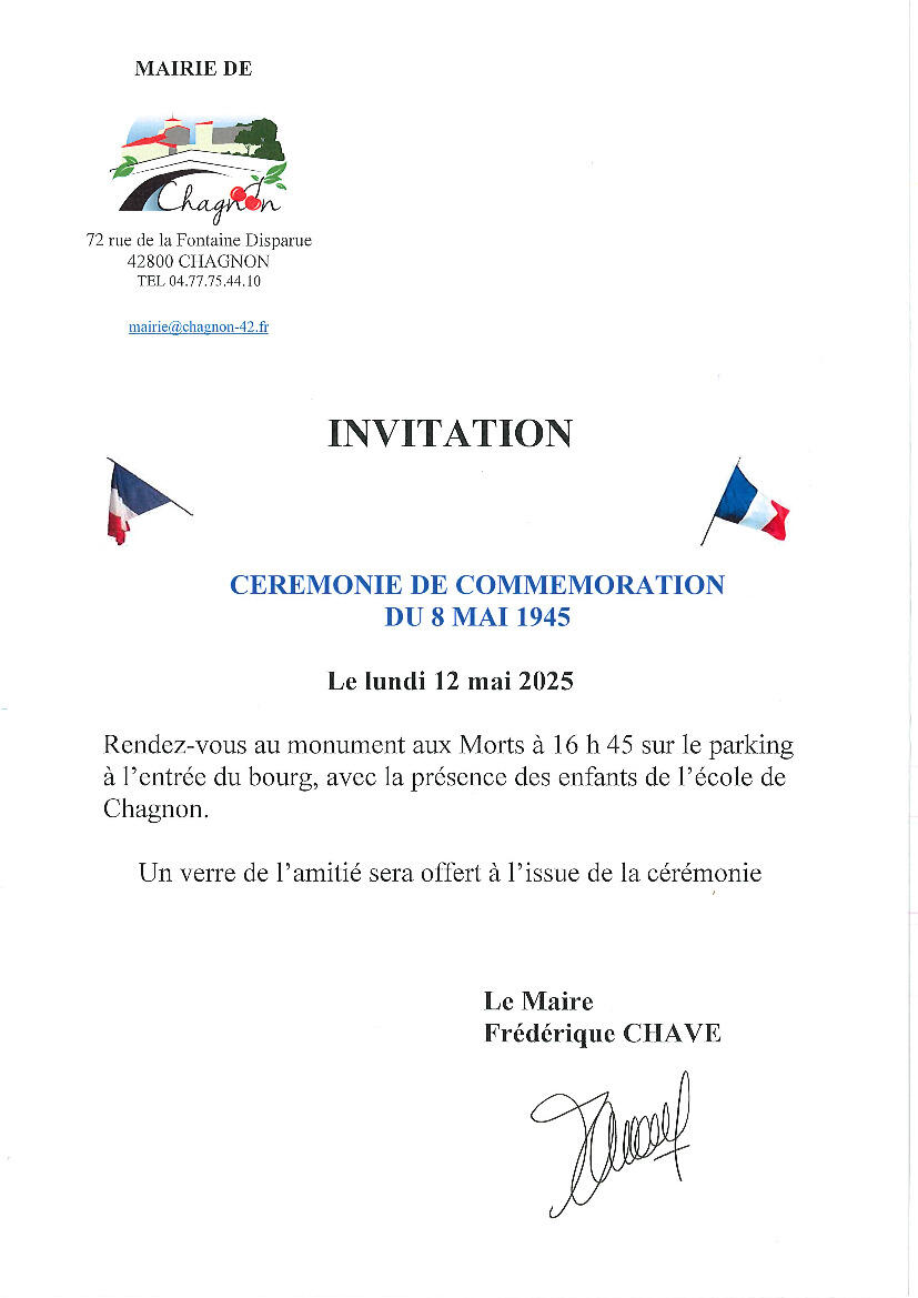 invitation commémoration du 8 mai 1945 le 12 mai 2025