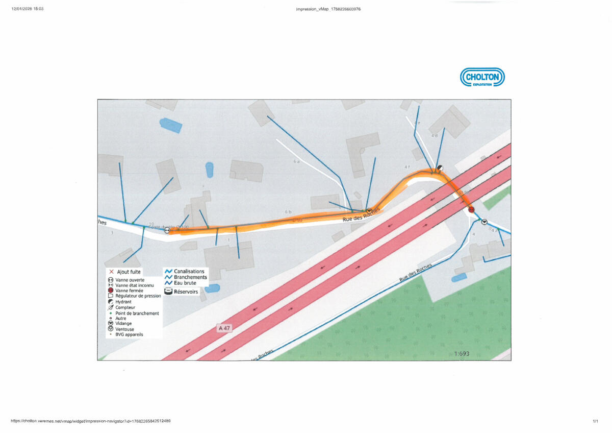 L'entreprise Cholton intervenant sur le réseau d'eau pour le compte de Saint-Etienne Métropole, informe la commune d'une coupure d'eau au niveau du 10, rue des roches (voir plan). La coupure aura lieu ce mardi 13 dans la matinée, pour une durée de moins d'une heure, le temps de changer le collier et le robinet de prise en charge. Un panneau d’information a été installé au droit du chantier.