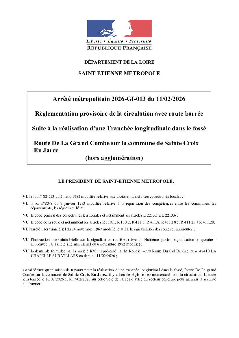 Route de la Grand 'Combe fermée le 16 et le 17 février