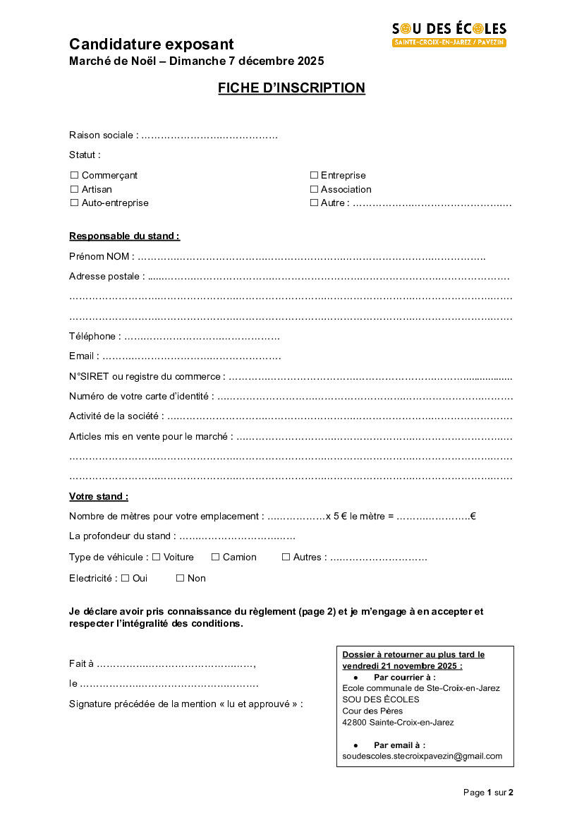 Marché de Noël - Appel exposants