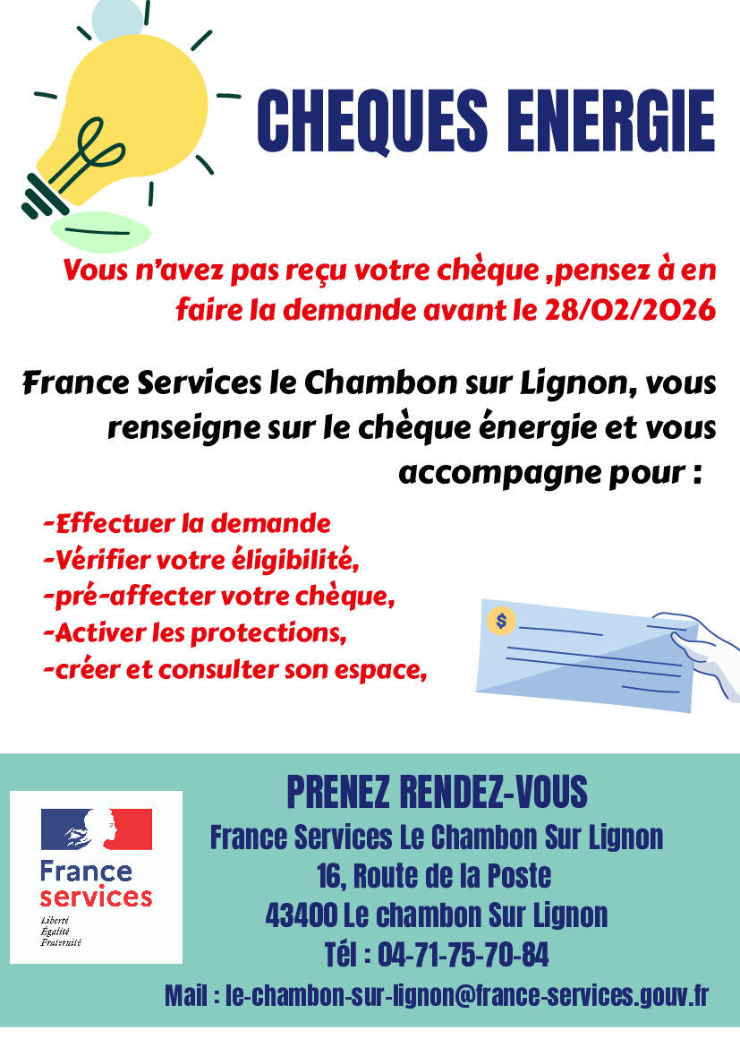 Si vous n'avez pas reçu votre chèque énergie 2025 vous pouvez en faire la demande jusqu'au 28/02.