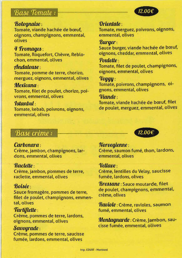 Vous trouverez ci-joint la carte des pizzas proposées