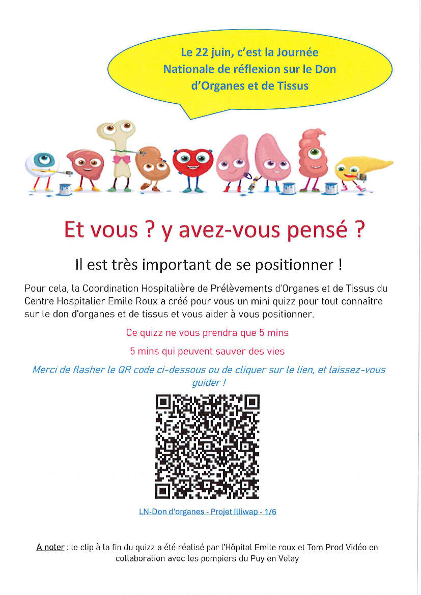 Le 22 juin, c'est la Journée Nationale de réflexion sur le Don d'Organes et de Tissus.