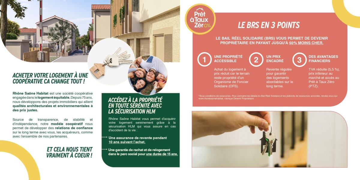 Certains logements sont disponibles en PSLA, un dispositif qui vous permet de devenir propriétaire à votre rythme et à prix maîtrisé. Les autres sont commercialisés en BRS, un dispositif qui rend la propriété accessible au plus grand nombre.»