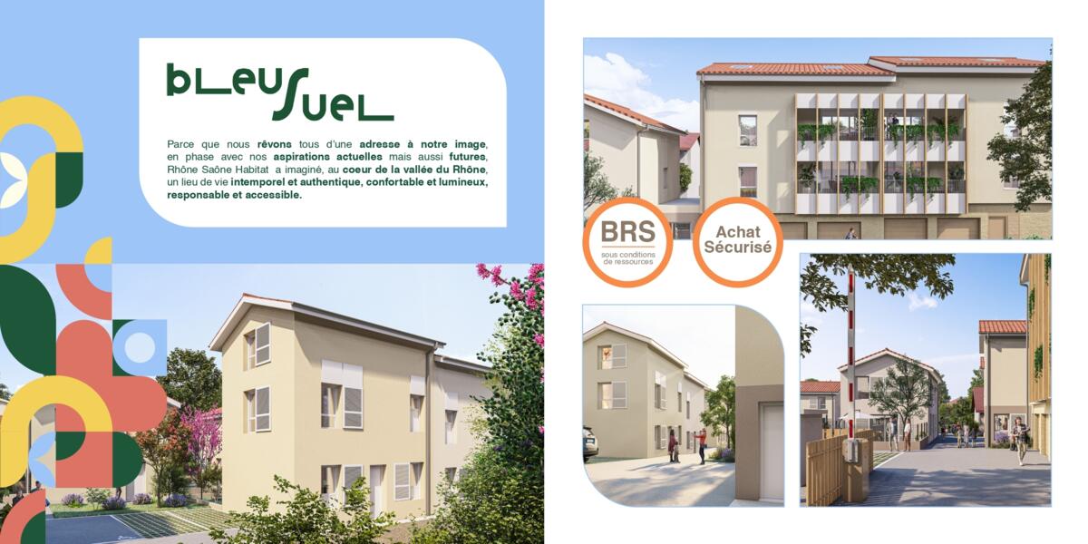 Avec Rhône Saône Habitat, découvrez BLEU SUEL, une résidence intimiste composée de 6 appartements et 7 maisons individuelles, dans un environnement calme et agréable.