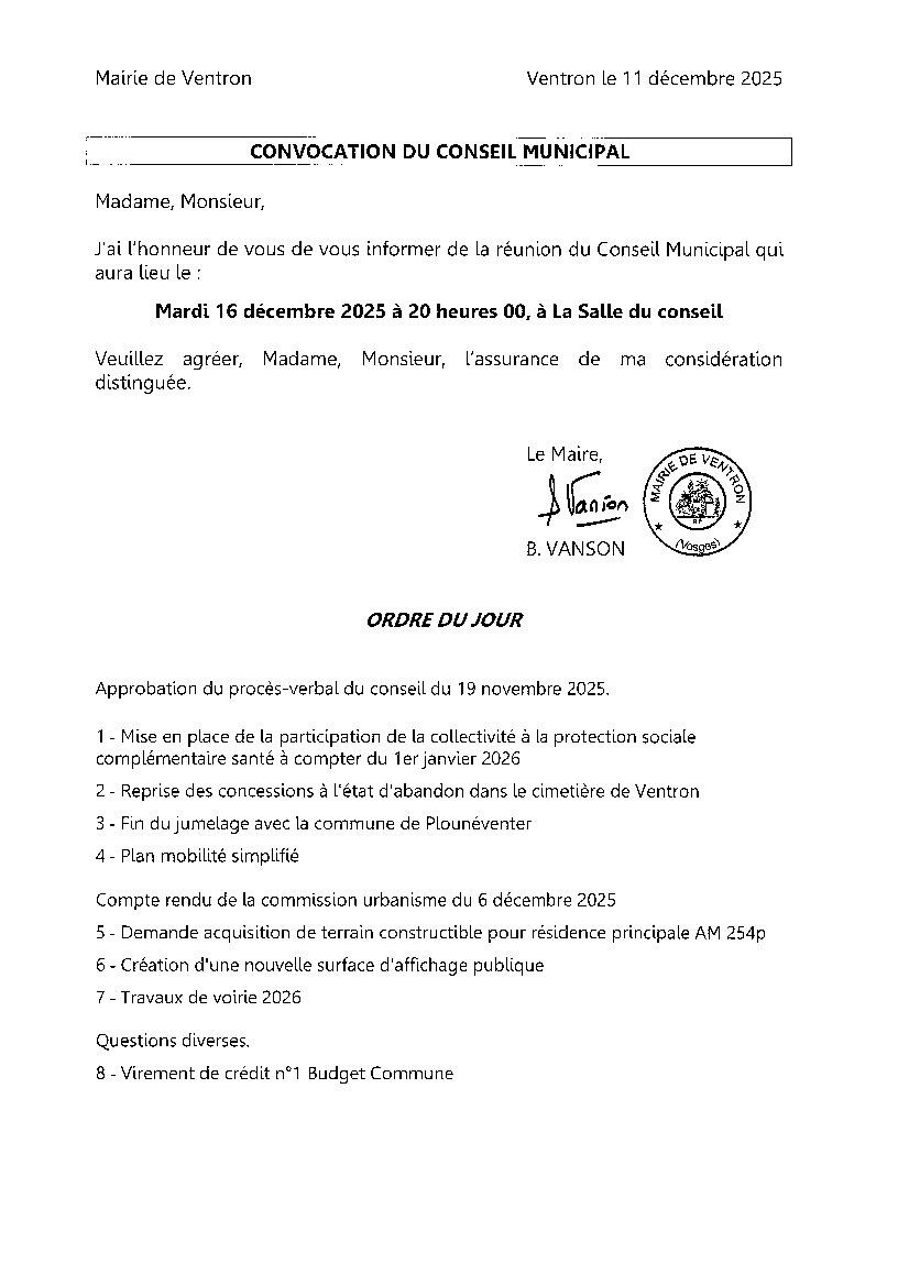 RÉUNION PUBLIQUE DE LA COMMISSION DE CONTRÔLE CHARGÉE DE LA RÉGULARITÉ DES LISTES ÉLECTORALES DE LA COMMUNE DE VENTRON 17/11/25 Seguir leyendo