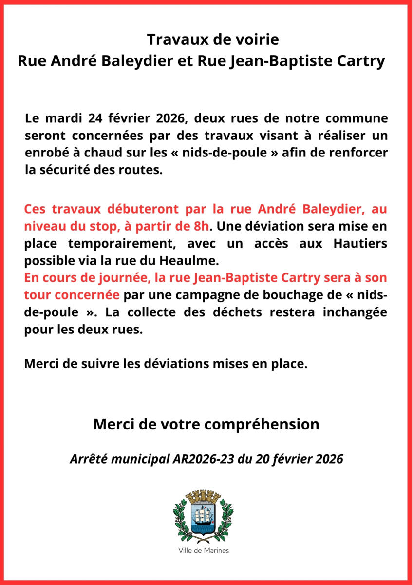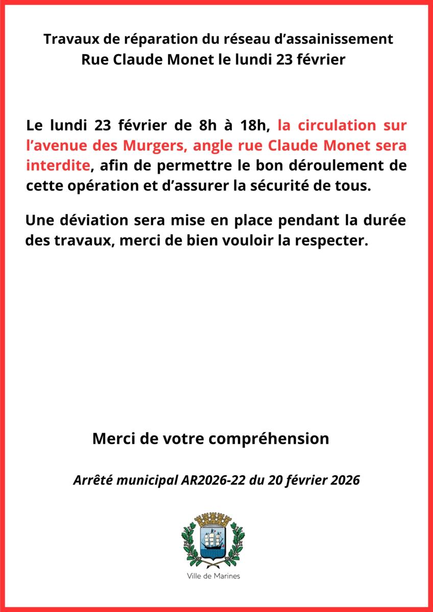 Fermeture de la rue du Heaulme du 24/2 à 6h au 26/2 à 18h