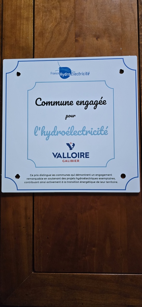 Valloire à reçu de la part de Monsieur Xavier CASIOT, Président de France -hydroélectricité, un prix de "commune engagée pour l'hydroélectricité".