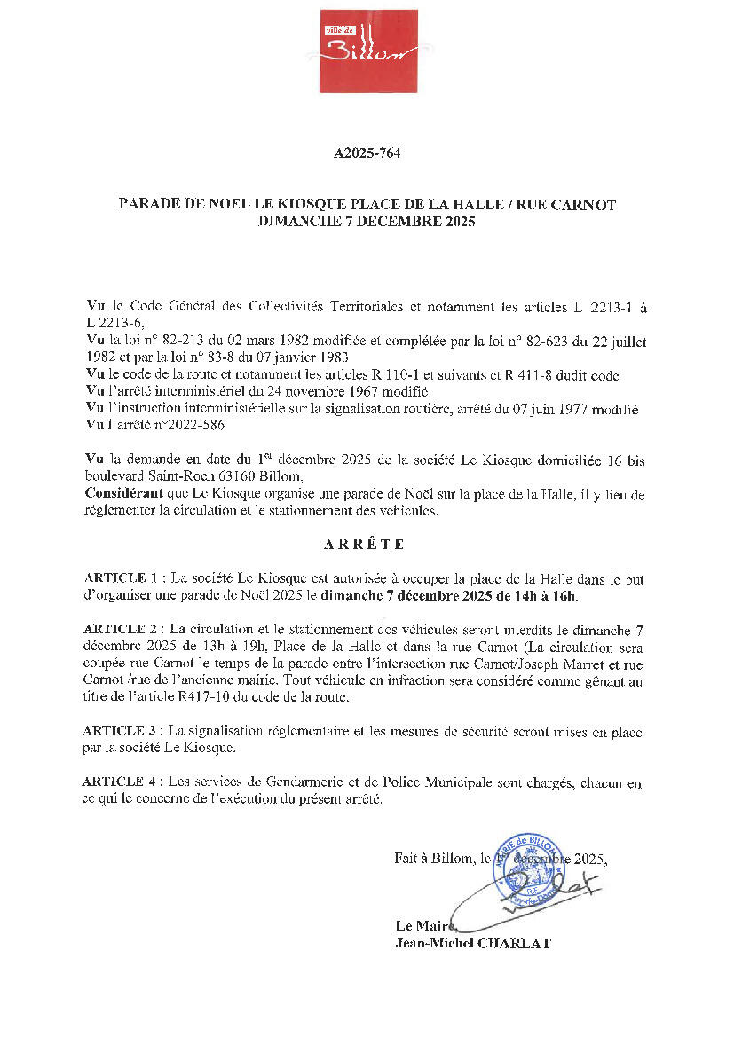 CIRCULATION FERMEE RUE CARNOT 6 ET 7 DECEMBRE