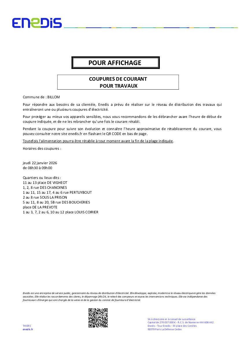 [COUPURE D'ELECTRICITE SUR LA COMMUNE : 22 janvier matin]