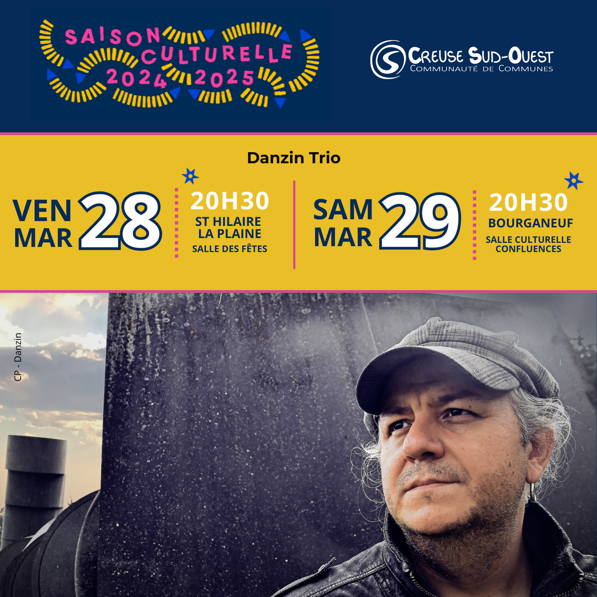 Danzin chante son Trio ! Rdv ce vendredi 28 mars à 20h30 la salle des Fêtes de Saint-Hilaire-la-Plaine et ce samedi 29 mars à 20h30 à la salle culturelle Confluences de Bourganeuf.