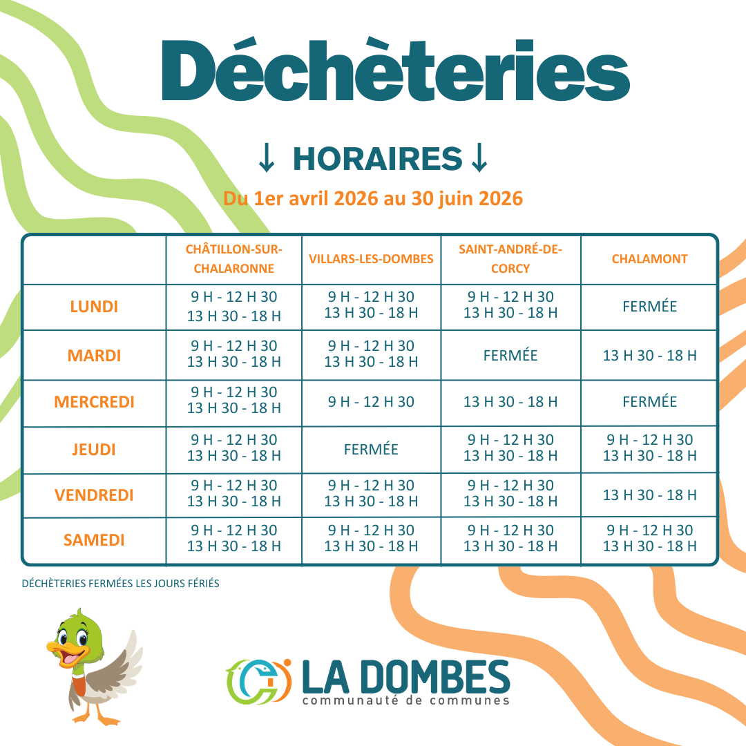 ℹ️ Découvrez les nouveaux horaires ci-dessous ou sur notre site internet : https://www.ccdombes.fr/