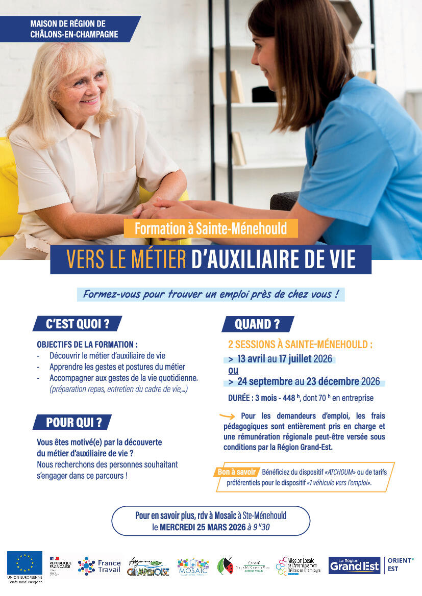 La Région Grand Est, la Communauté de Communes de l'Argonne Champenoise et le CFPPA - Campus de la Nature et du Vivant de Somme-Vesle, en partenariat avec les acteurs du territoire, 𝐯𝐨𝐮𝐬 𝐩𝐫𝐨𝐩𝐨𝐬𝐞𝐧𝐭 𝐮𝐧𝐞 𝐟𝐨𝐫𝐦𝐚𝐭𝐢𝐨𝐧 𝐬𝐮𝐫 𝐦𝐞𝐬𝐮𝐫𝐞 𝐯𝐞𝐫𝐬 𝐥𝐞 𝐦𝐞́𝐭𝐢𝐞𝐫 𝐝'𝐚𝐮𝐱𝐢𝐥𝐢𝐚𝐢𝐫𝐞 𝐝𝐞 𝐯𝐢𝐞.