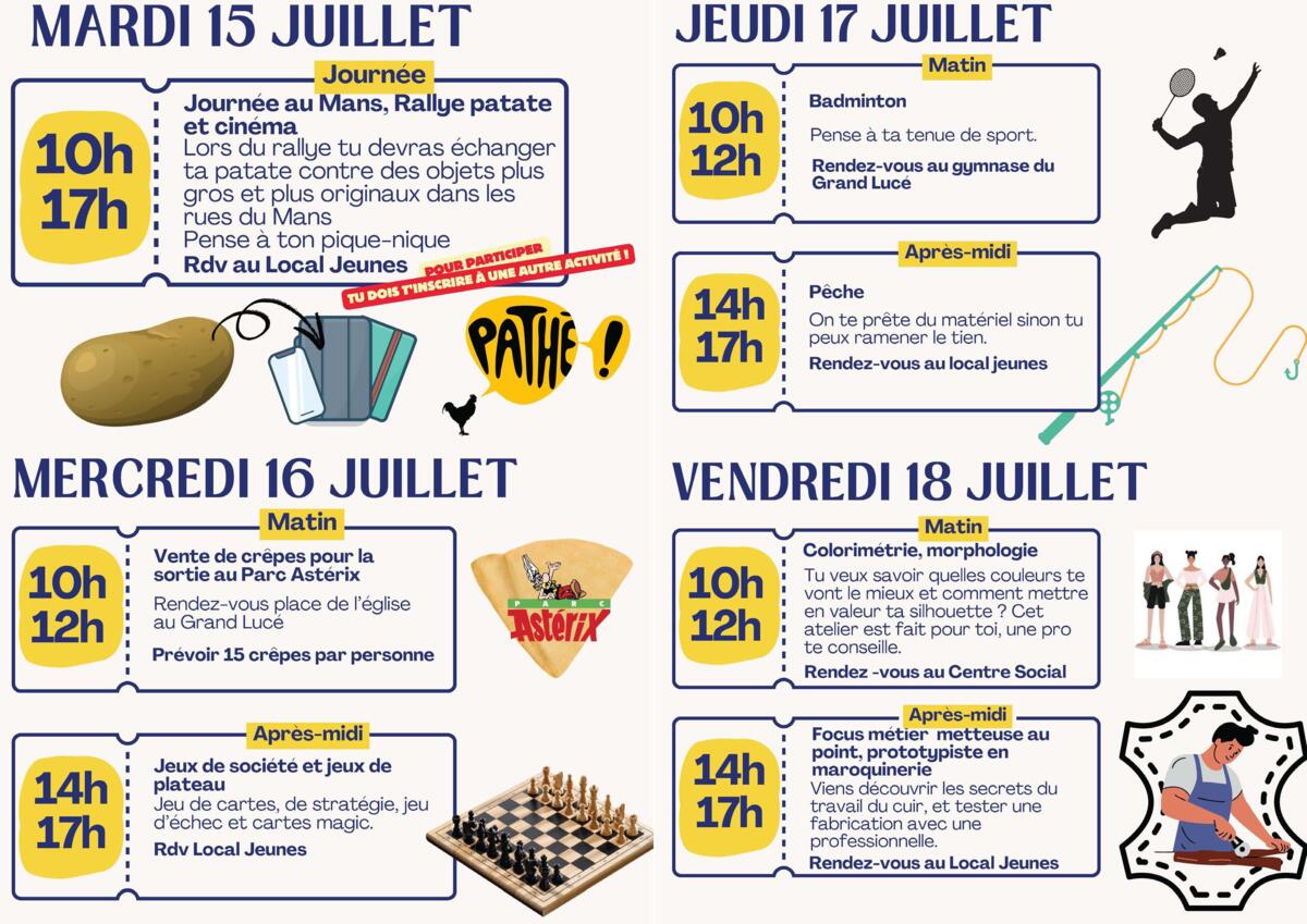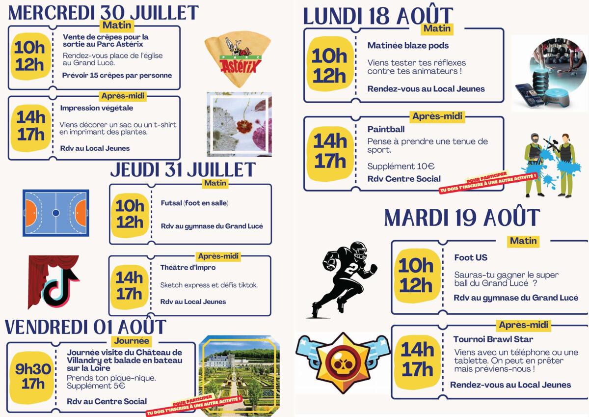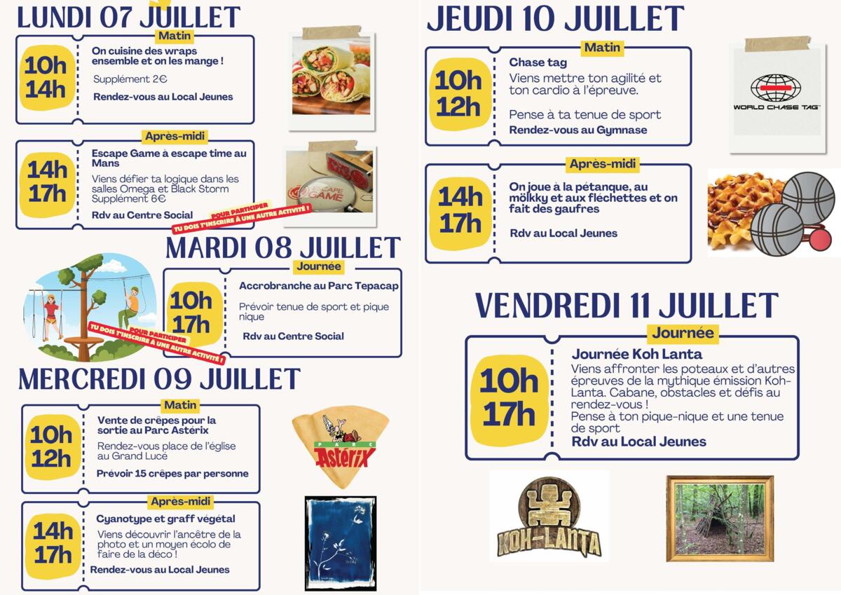 Programme été pour les 03 - 11 ans disponible. Les inscriptions débuterons à partir du jeudi 12 juin :