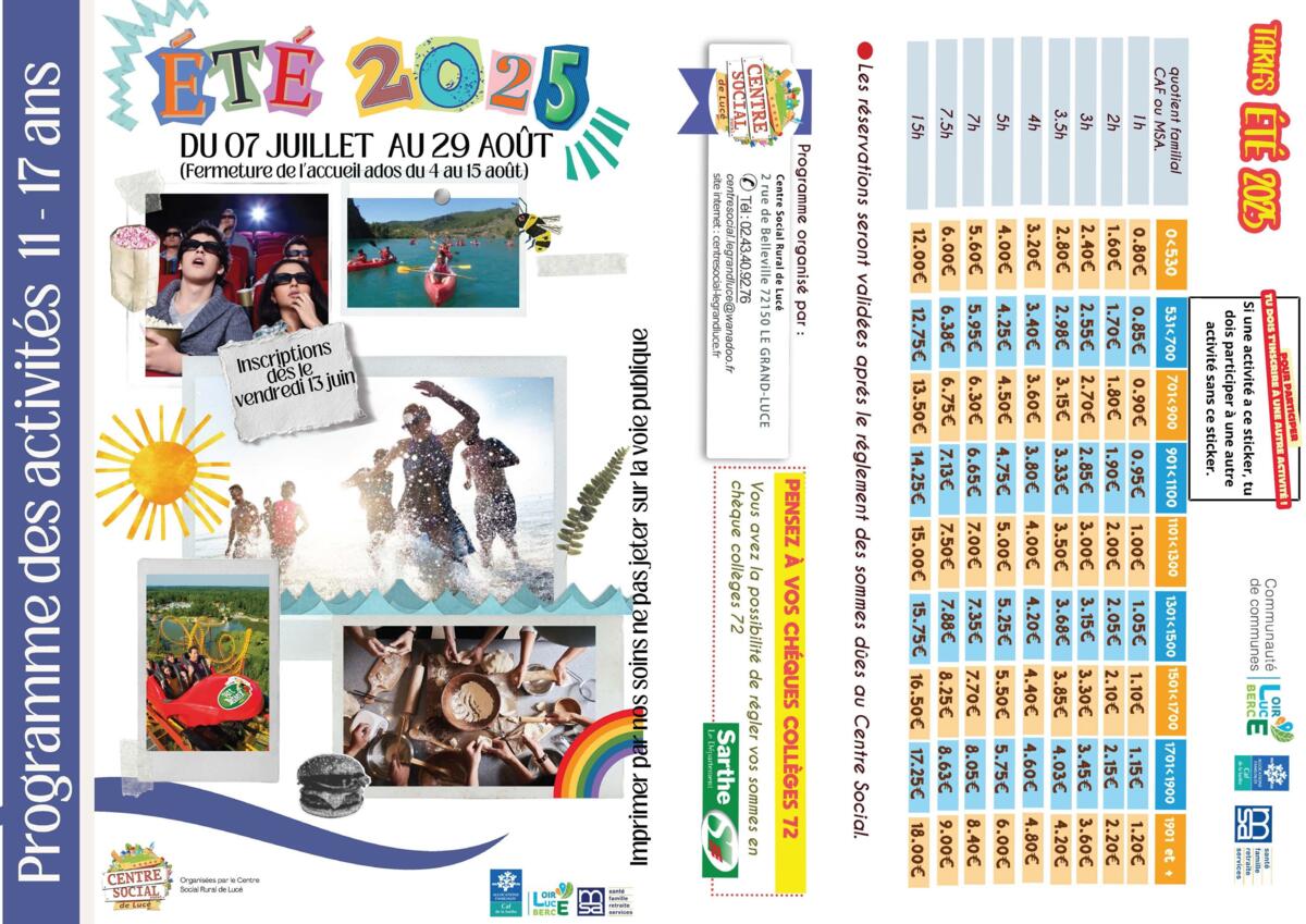 Programme vacances d'été pour les 11- 17 ans