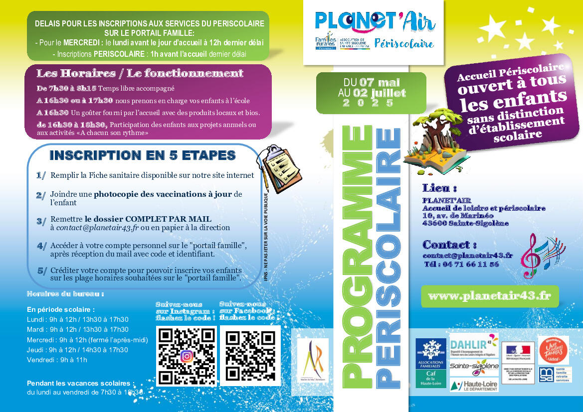 Votre centre de loisirs de Sainte-Sigolène PLANET'AIR vous dévoile le programme des mercredis et du périscolaire des mois de Mai et Juin: