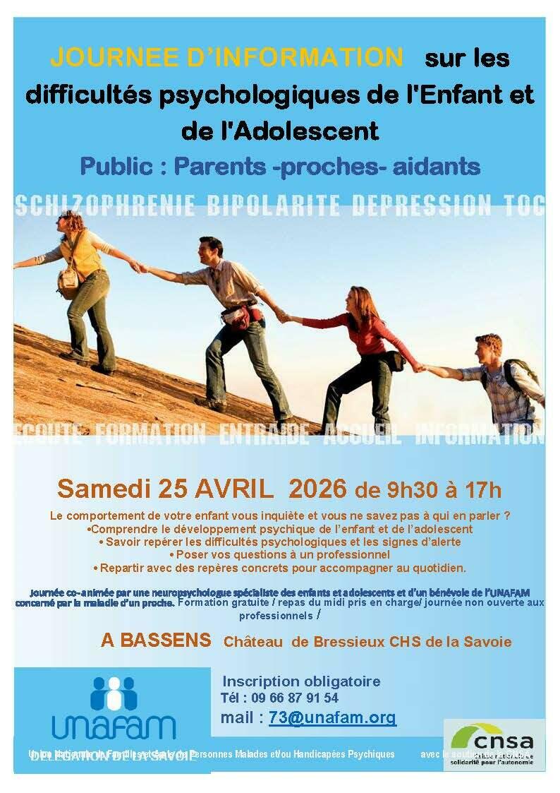 25 abr. 2026 9:30 - 17:00 Journée d'information : les difficultés psychologiques de l'enfant et de l'adolescent Ver más