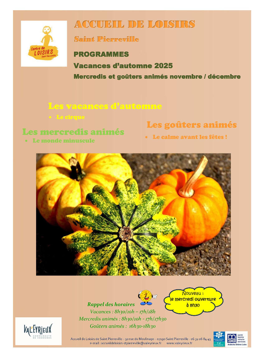 PROGRAMME octobre/décembre ALSH St Pierreville