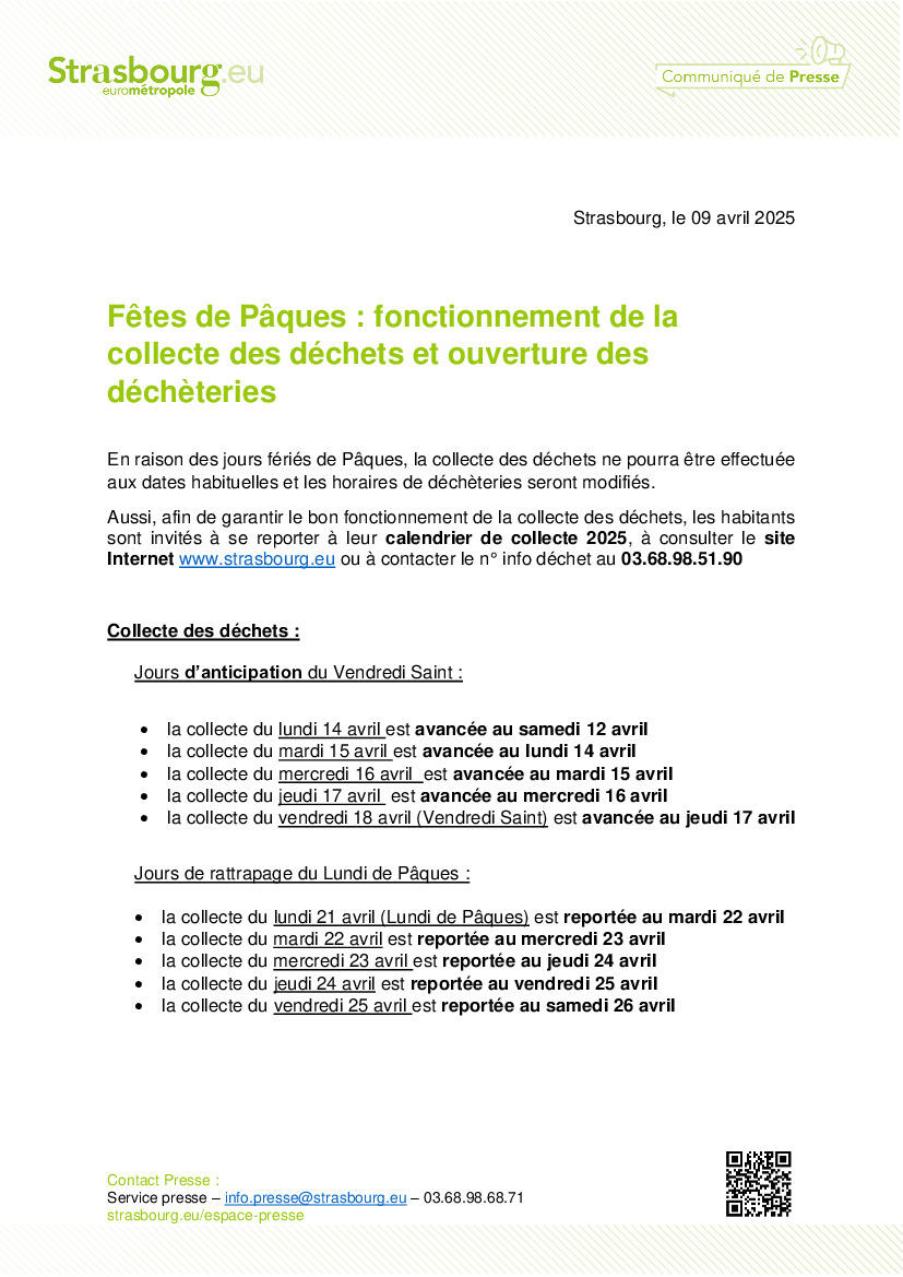Fêtes de Pâques : fonctionnement de la collecte des déchets et ouverture des déchèteries