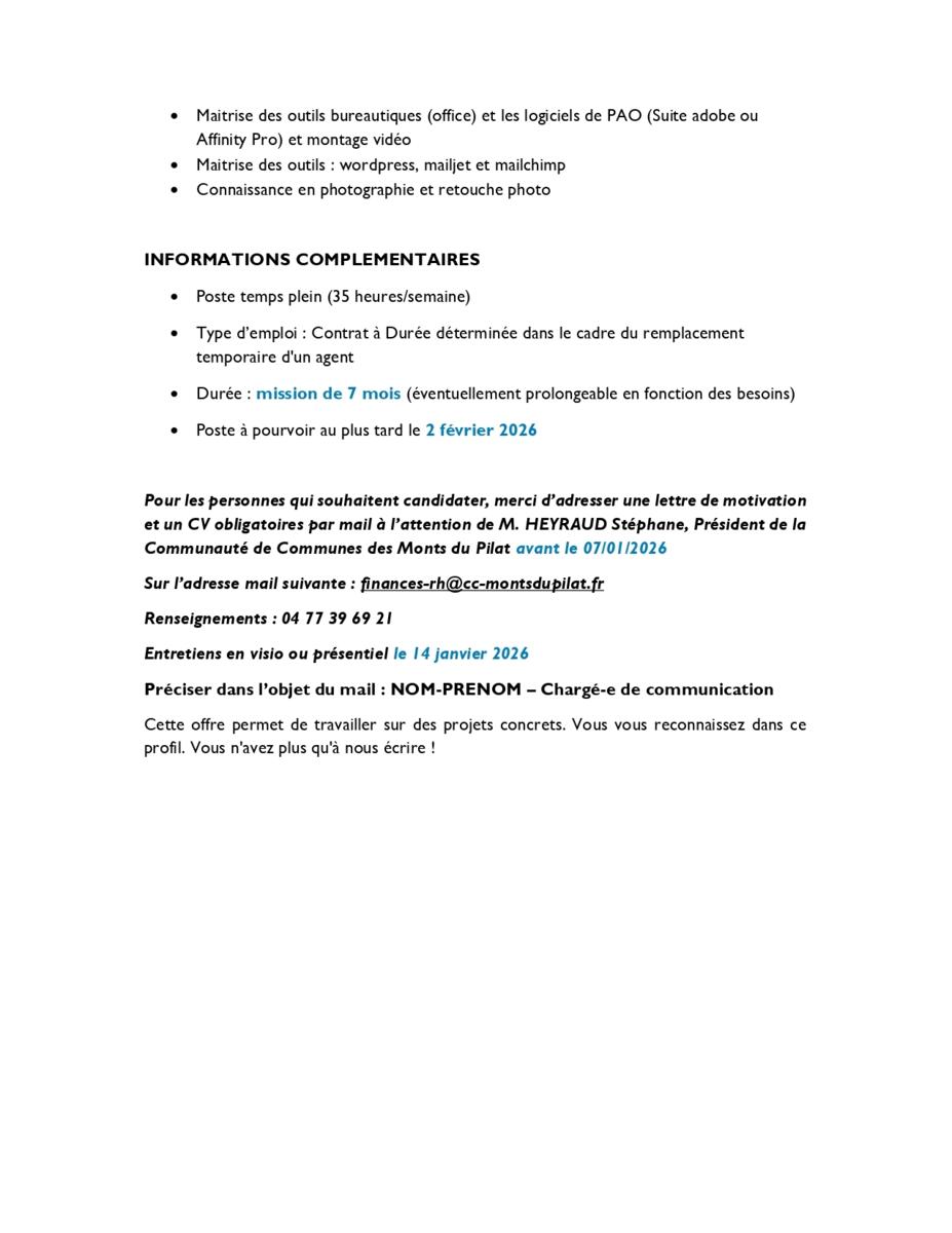 La Communauté de Communes recrute un.e chargé.e de communication👇: