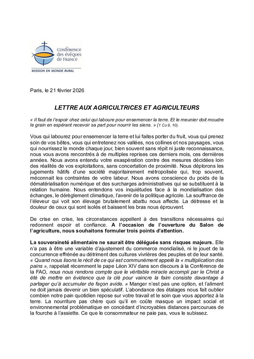 Deux messages importants du diocèse 3/3/26 Message du Père Bruno Cornier suite à certaines attaques du projet Familya Lettre des évêques de France au monde agricole