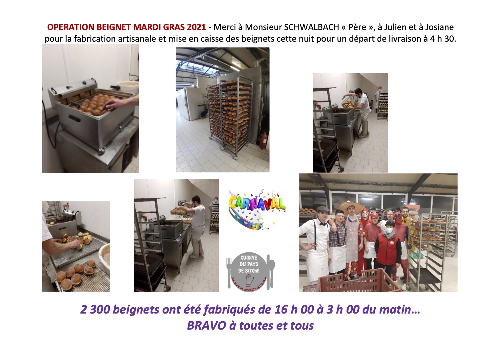 Merci à Monsieur SCHWALBACH “Père”, à Julien et à Josiane pour la fabrication artisanale et mise en caisse des beignets cette nuit pour un départ de livraison à 4h30.