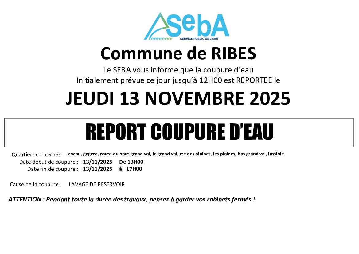 REPORT AVIS DE COUPURE D'EAU RIBES 13/11/2025