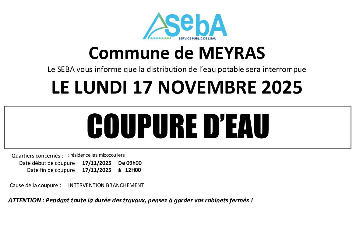 AVIS DE COUPURE D'EAU MEYRAS 17/11/2025