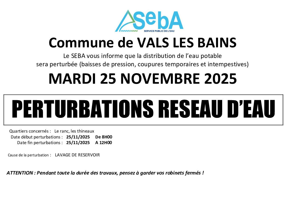 AVIS DE COUPURE DE PERTURBATIONS RESEAU AEP VALS LES BAINS