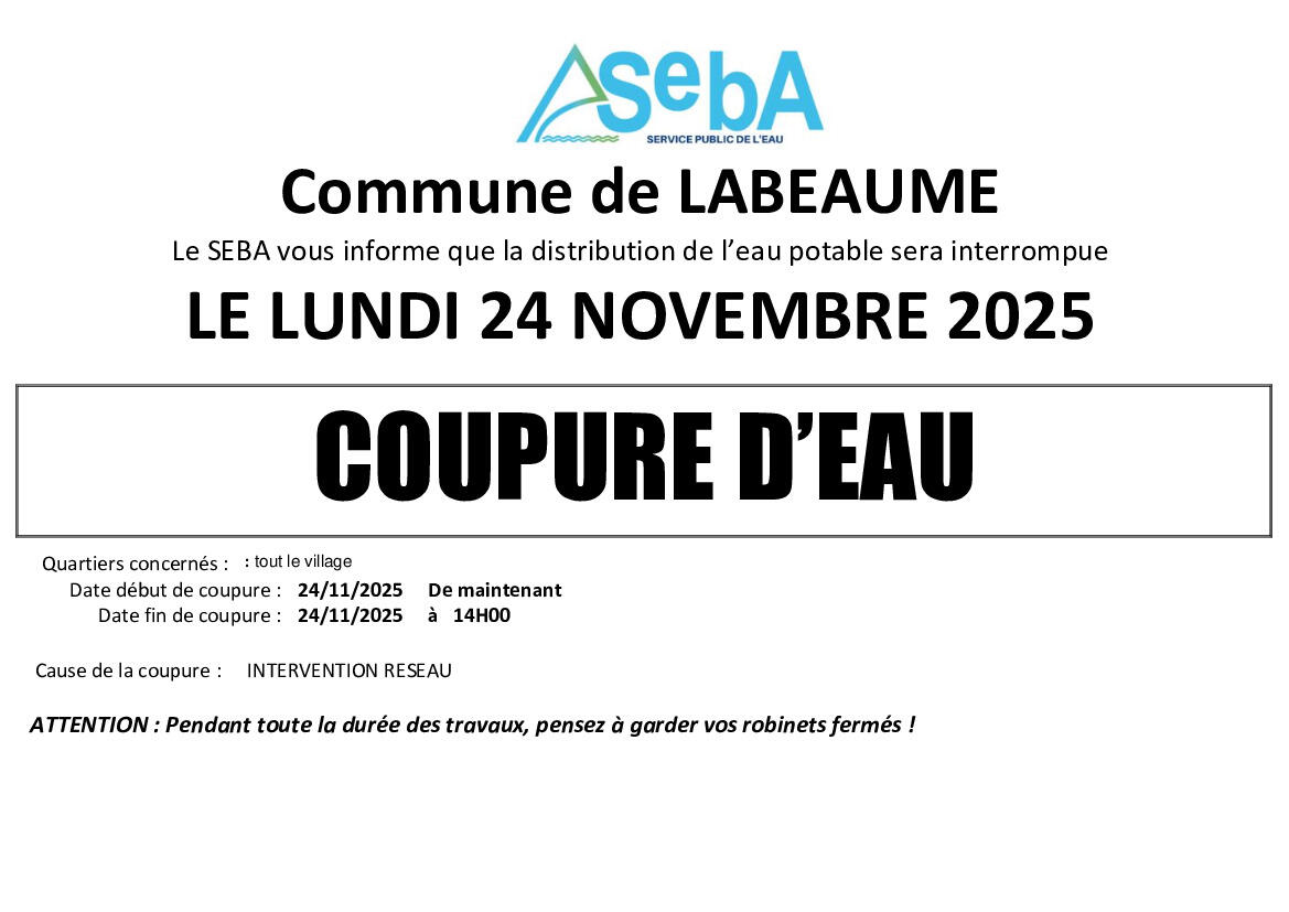AVIS DE COUPURE D'EAU LABEAUME 24/11/2025