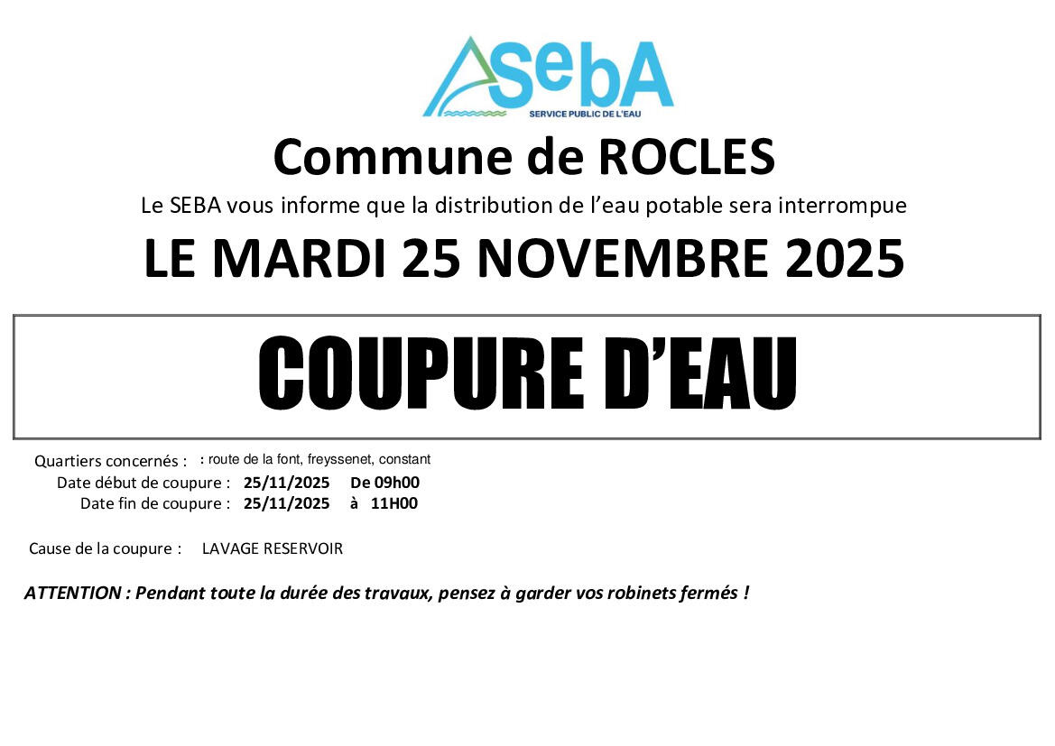 AVIS DE COUPURE D'EAU ROCLES 25/11/2025