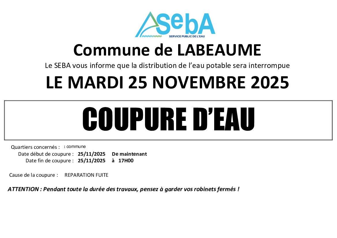 AVIS DE COUPURE D'EAU LABEAUME 25/11/2025