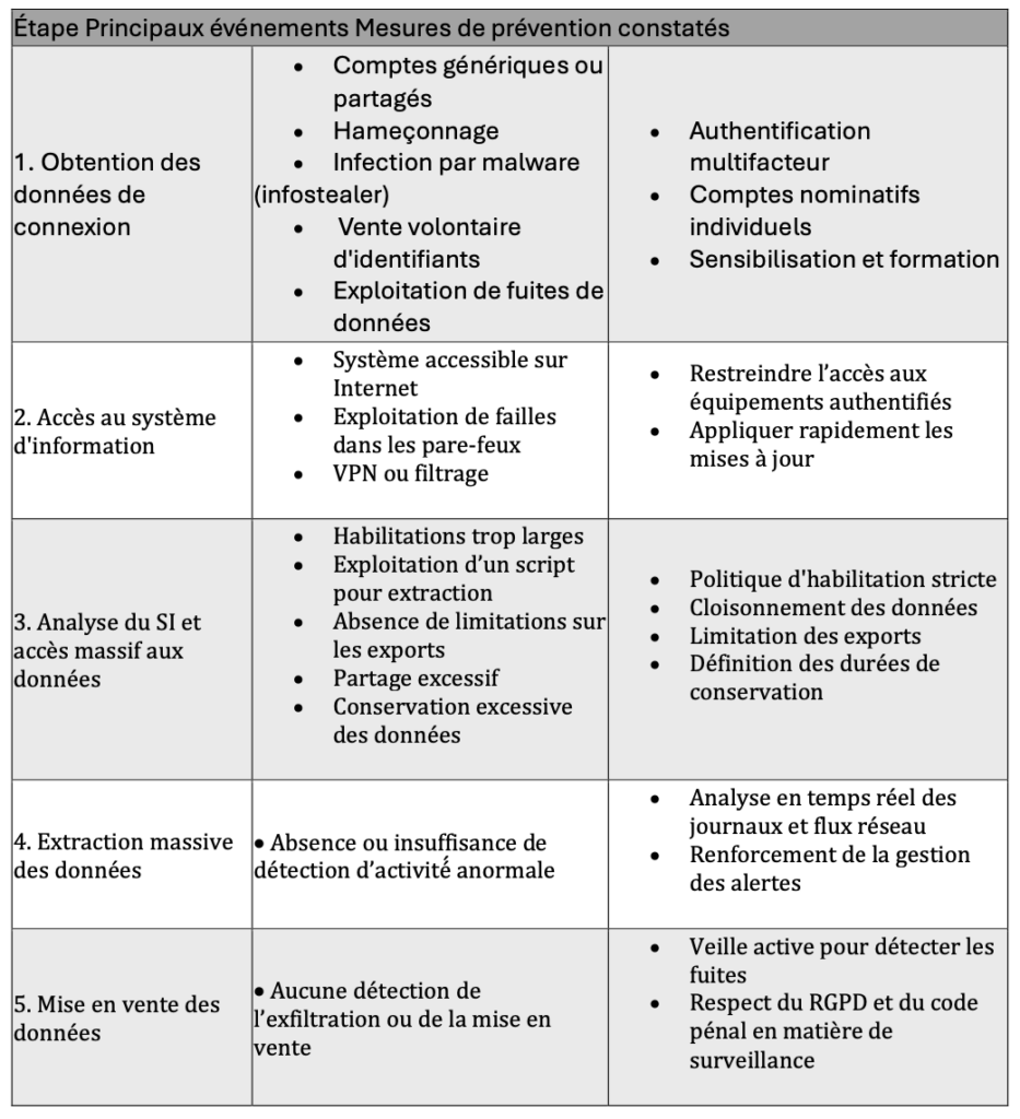 La CNIL a identifié les différentes étapes clés d’une cyberattaque ainsi que les mesures de prévention à mettre en œuvre pour réduire ces menaces.