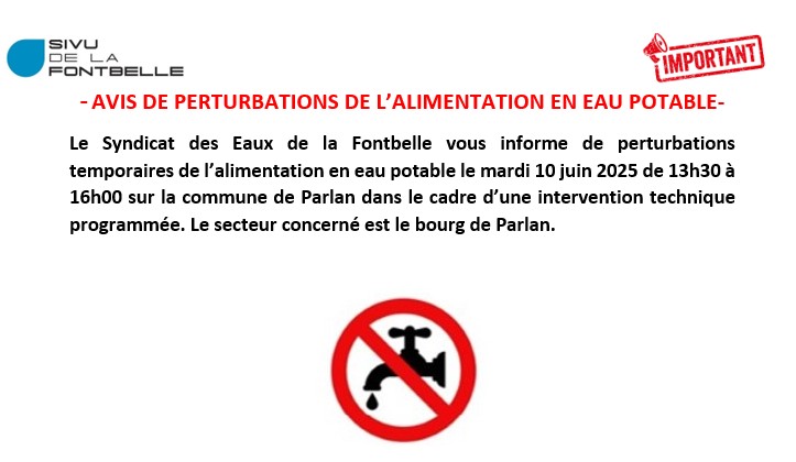 AVIS DE PERTURBATIONS ALIMENTATION EN EAU POTABLE PARLAN