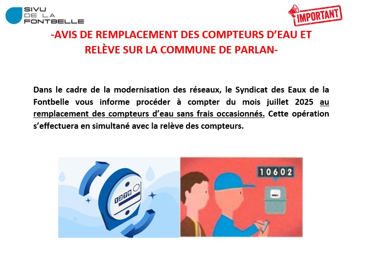 REMPLACEMENT DES COMPTEURS D'EAU ET RELÈVE PARLAN