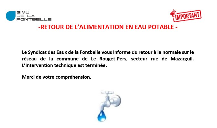 / RETOUR DE L'ALIMENTATION EN EAU POTABLE LE ROUGET