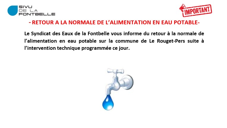 RETOUR DE L'ALIMENTATION EN EAU POTABLE LE ROUGET-PERS