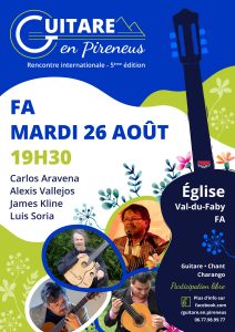 Dans le cadre de la 5ème édition de la Rencontre Internationale, GUITARE en Pireneus, va donner un concert à l’église de FA.