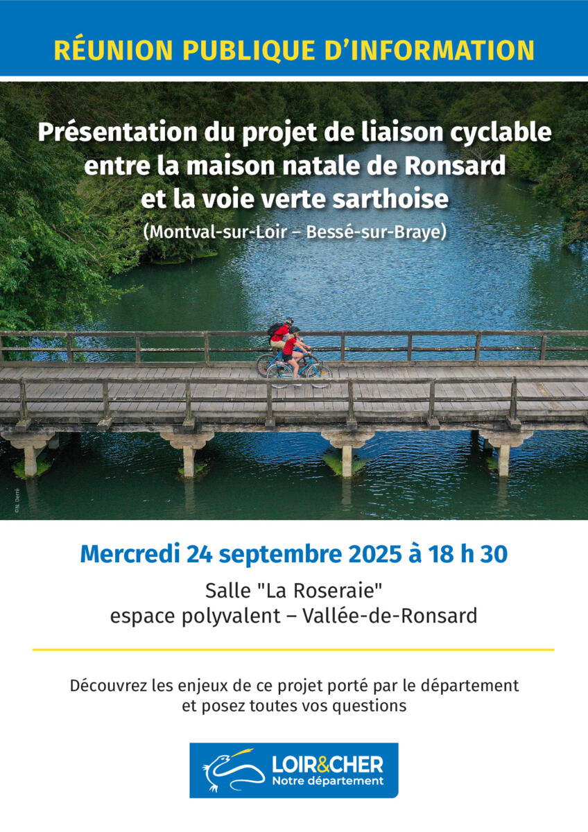 Une réunion concernant la présentation du projet de liaison cyclable entre la maison natale de Ronsard et la voie verte sarthoise se tiendra le :