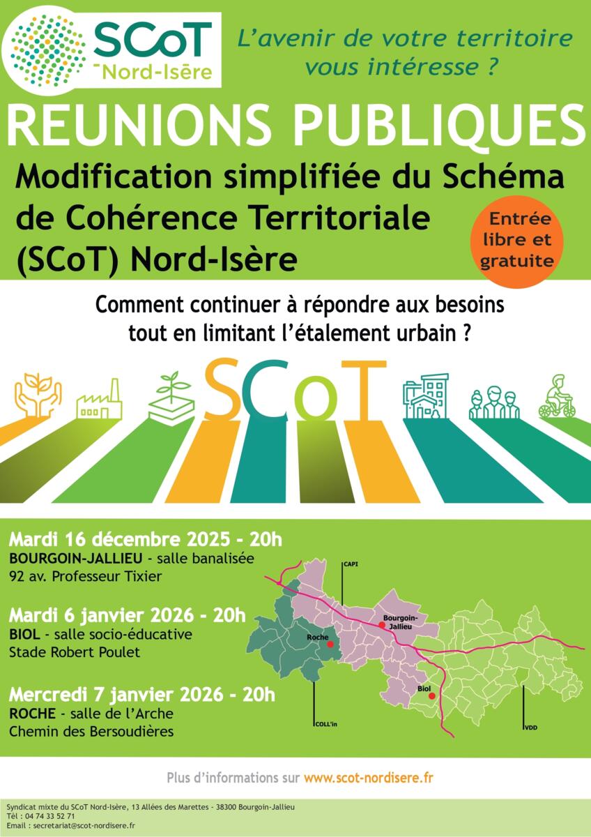 🙋 Deux réunions publiques à propos du Schéma de Cohérence Territoriale Nord-Isère auront lieu en ce début d'année, notamment à Biol mardi 6 janvier.
