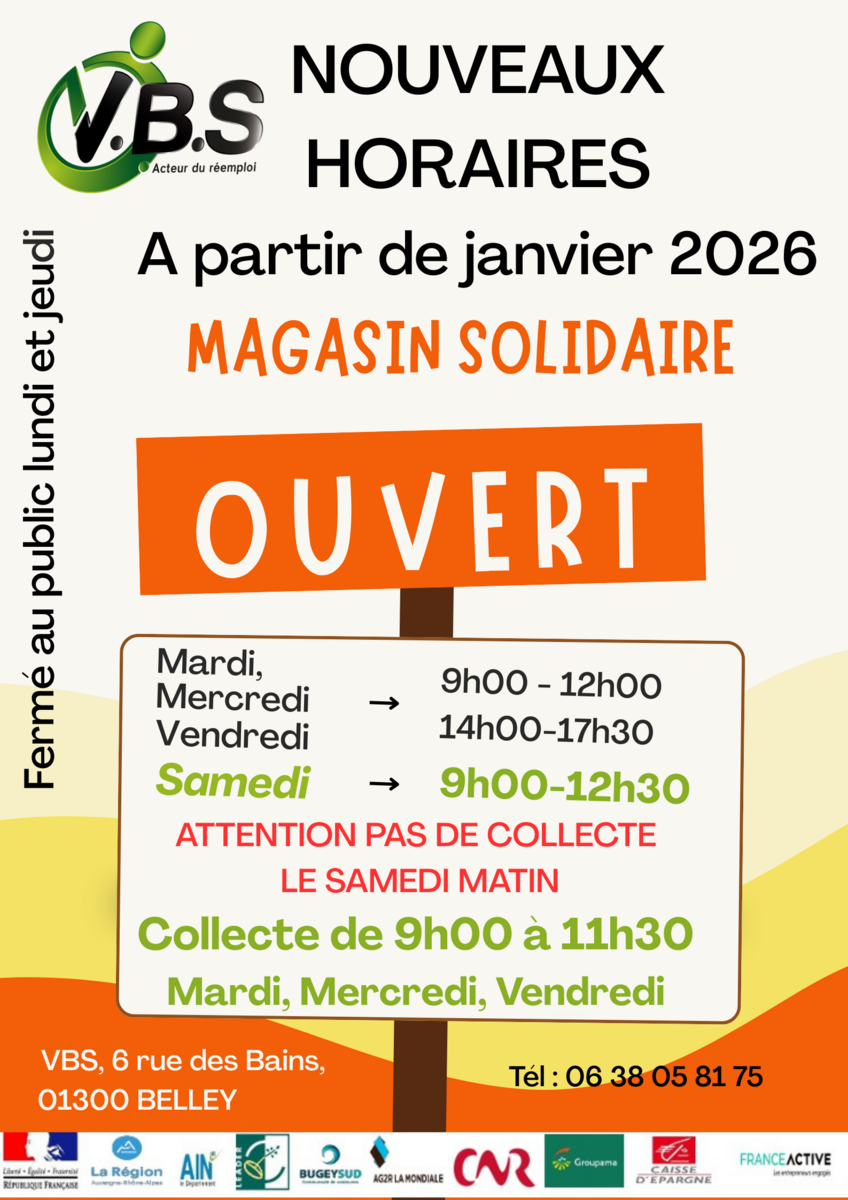 Nouveau horaires recyclerie VBS