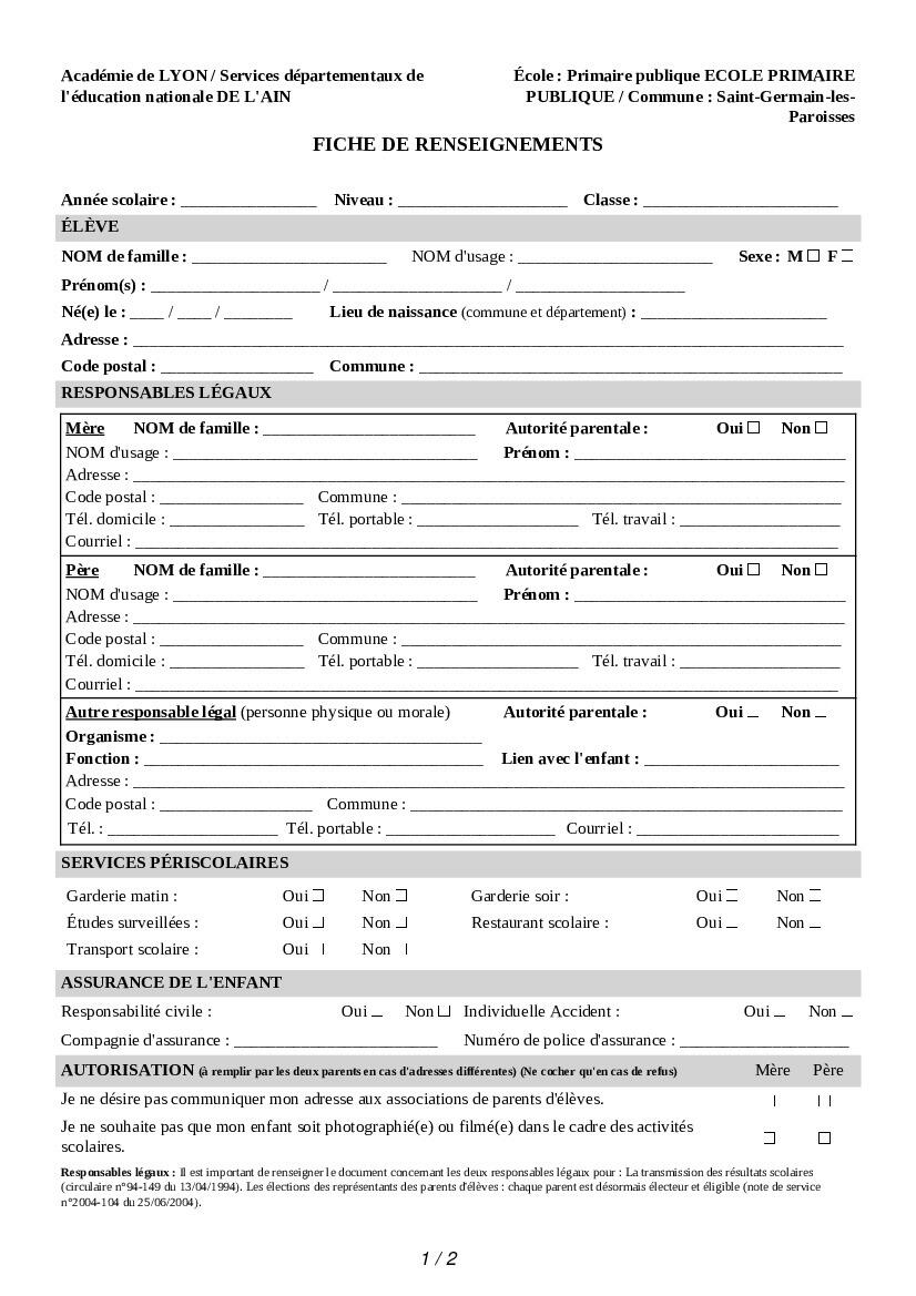 Les inscription à l'école pour la rentrée de septembre 2026 sont ouvertes à la mairie de Saint Germain les Paroisses.
