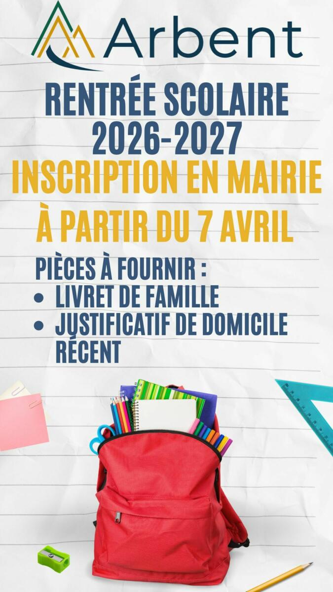 INSCRIPTION RENTRÉE SCOLAIRE 2026 - 2027