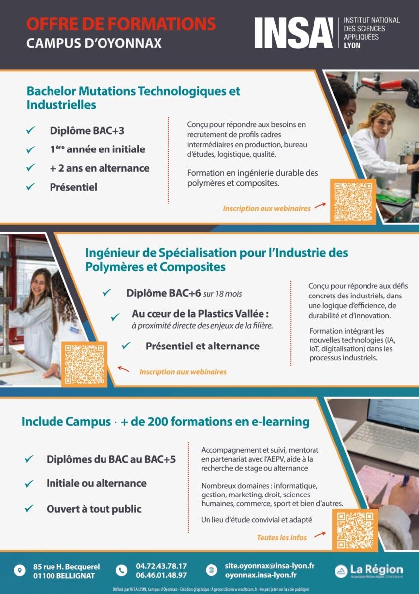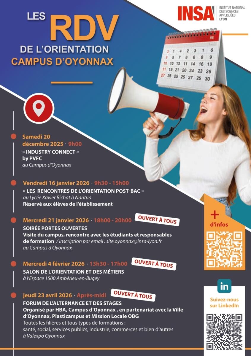 Cette soirée s’adresse à toute personne souhaitant découvrir le campus d’Oyonnax, les formations, échanger avec les étudiants et enseignants, ou encore se renseigner davantage sur l’INSA Lyon.